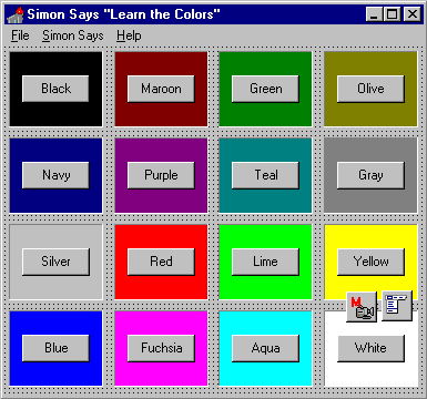 should save as SIMNSAYS.PAS, contains sixteen TPanels and sixteen TButton controls.
